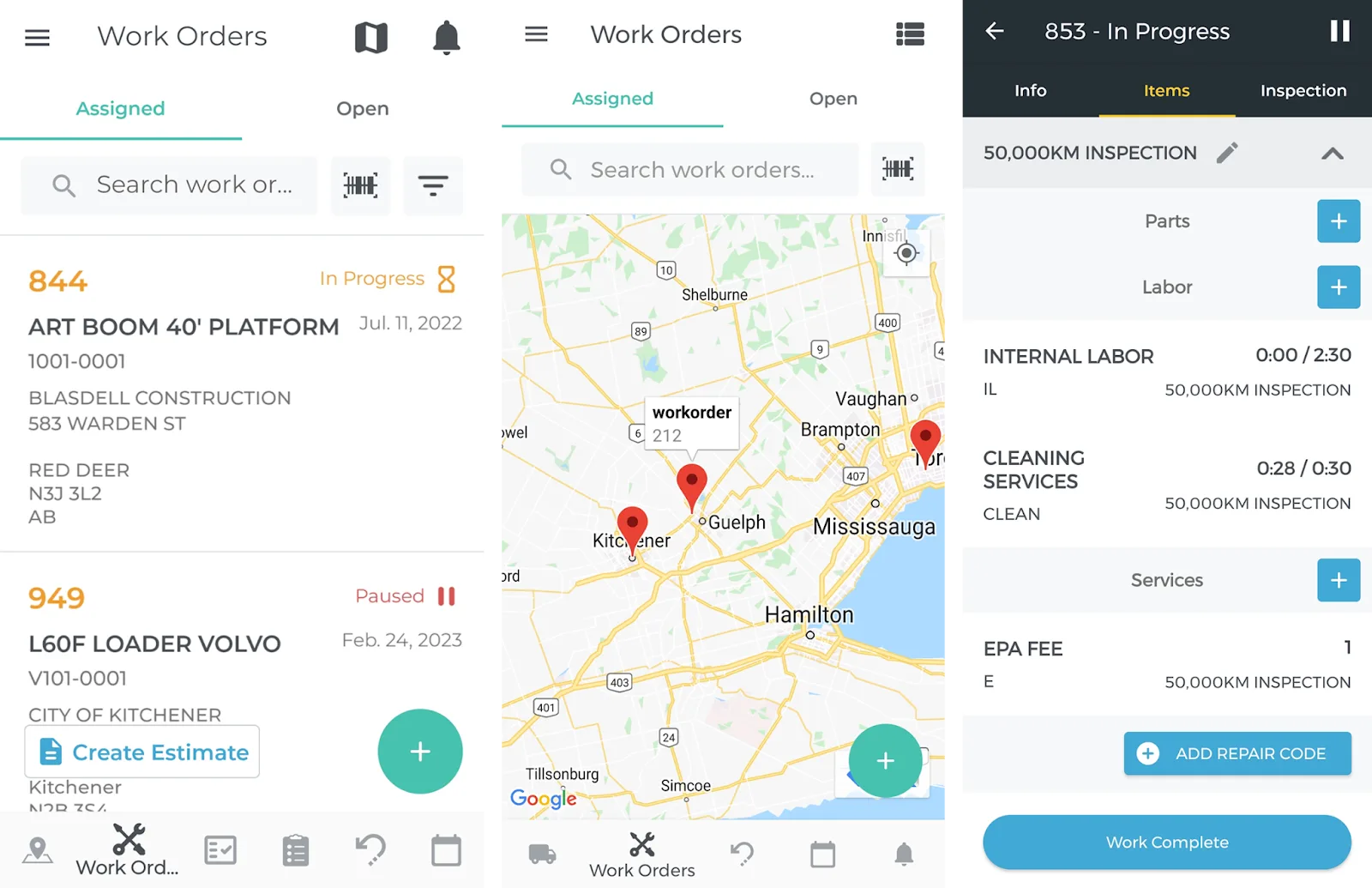 This tool gives Mechanics all the functionality they need to complete Work Orders. Browse and complete assigned Work Orders, take photos and fill out Inspection forms, request parts, and have the customer sign off on the completed Work Order.